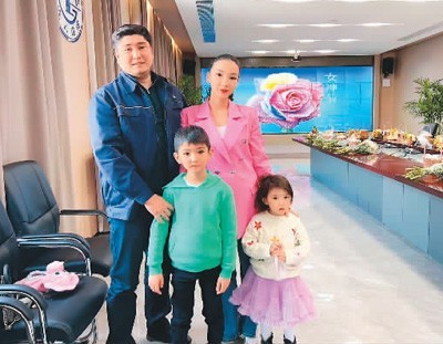 中哈(连云港)物流合作基地派驻人员阿孜(左一)和家人参加公司组织的插花活动。