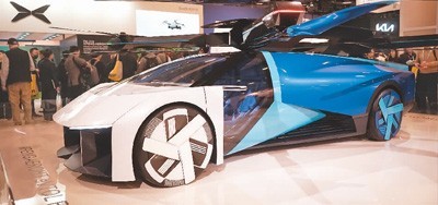 在美国拉斯维加斯消费电子展上,观众在参观中国企业小鹏的“飞行汽车”展区。