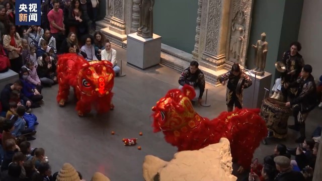 除了外墙上的灯光秀,博物馆还组织了舞狮表演、为孩子们讲述“年”的故事等主题活动,庆祝中国春节。