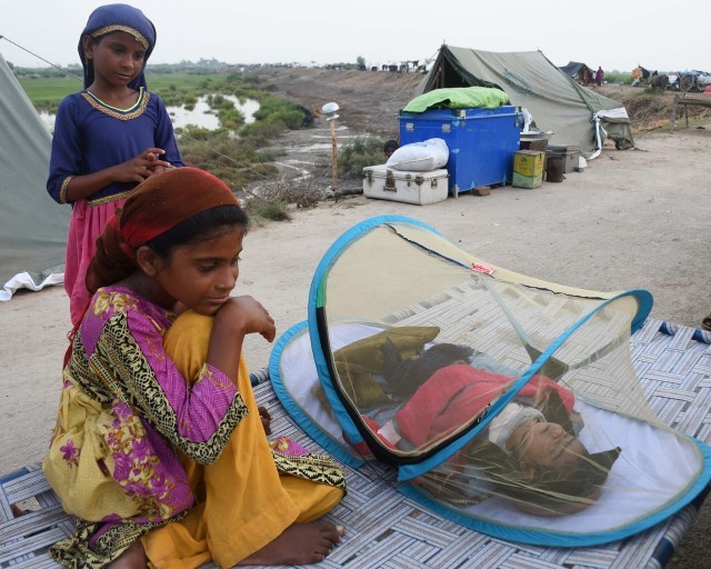 “即使有医疗服务,如何通过洪水、混乱、被毁坏的道路去获得医疗服务也是一桩难题。”与此同时,洪水摧毁了房屋和交通,数百万人流离失所,被迫露天席地而睡,这使得他们更容易暴露在携带疟疾寄生虫的蚊子叮咬之下。