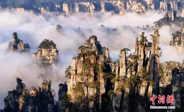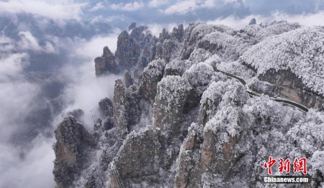 湖南张家界:云漫峰峦 冰雪添韵。吴勇兵 摄