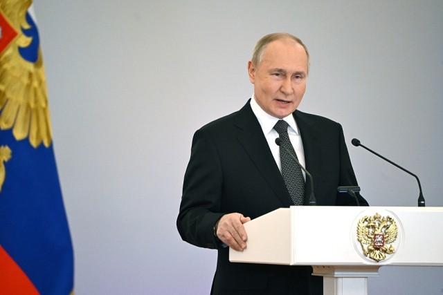 当地时间2023年12月8日,俄罗斯总统普京在克里姆林宫举行的“祖国英雄日”颁奖仪式上发表讲话。 本文图均为 视觉中国 资料图
