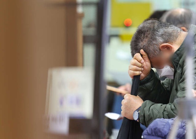 2024年3月12日,韩国首尔,一家医院内,前来看病的患者正在等待挂号。随着医师集体罢诊离岗事态持续发酵,韩国政府自3月11日起向全国20家医院调派军医和公共卫生医师来弥补医疗空缺,为期4周。视觉中国供图