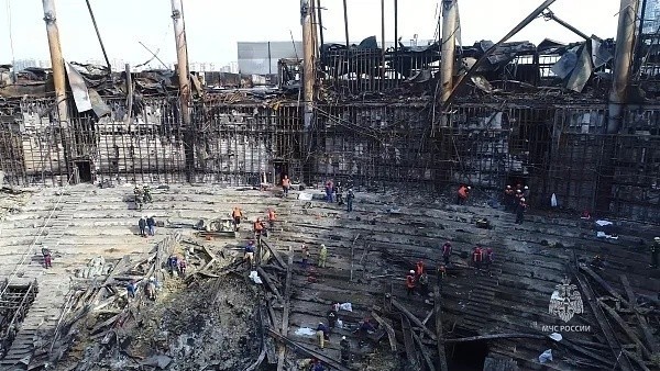 当地时间2024年3月22日晚“克罗库斯城”音乐厅发生严重恐袭事件。25日,瓦砾清理工作结束。图源:视觉中国