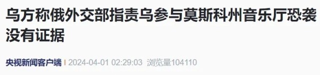 乌方称俄外交部指责乌参与莫斯科州音乐厅恐袭没有证据