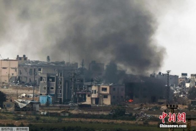 资料图:2023年10月,新一轮巴以冲突爆发。图为2023年12月27日,以色列南部与加沙边界附近浓烟滚滚。