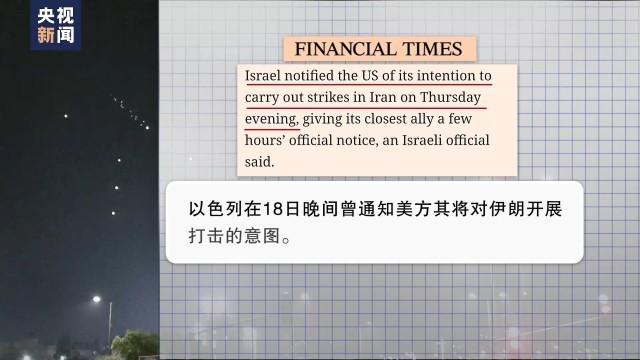 英国《金融时报》报道称,以色列在18日晚间曾通知美方其将对伊朗开展打击的意图。