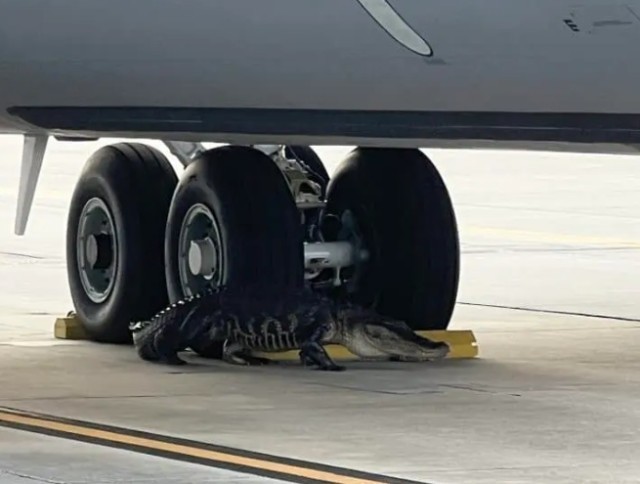 美国麦克迪尔空军基地出现大鳄鱼。(图源:美国麦克迪尔空军基地)
