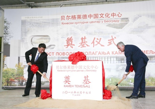 2016年6月17日,国家主席习近平与时任塞尔维亚总统尼科利奇在贝尔格莱德共同出席中国文化中心奠基仪式。