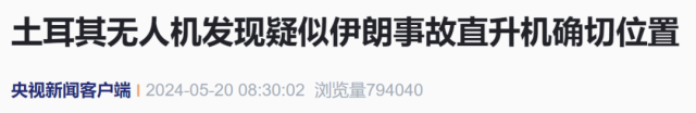 土耳其阿纳多卢通讯社当地时间20日报道称,土耳其向伊朗派出的“游骑兵”无人机识别出热源,很可能是直升机发生事故的地点,并向伊朗方面提供了确切坐标。