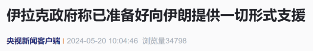 总台记者米春泽:伊拉克媒体对这起事故也予以高度关注,有报道分析称,本月由伊朗支持的部分伊拉克民兵武装派系针对以色列境内多地频繁发动袭击。在这一背景下,伊朗总统及其随行团队直升机遭遇事故可能会进一步加剧伊朗与以色列间的紧张局势,继而导致伊拉克民兵武装派系针对以色列的袭击行动烈度加大。一些观察人士也对伊拉克境内安全局势由于该事故增加一系列不稳定因素而表达了担忧。