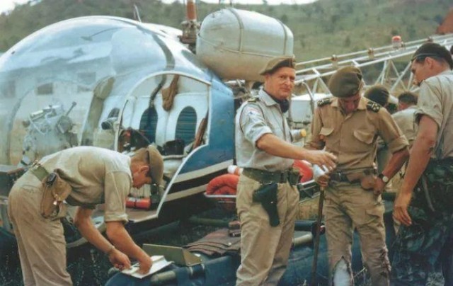 1965 年在刚果(金),迈克·霍尔(左二)安排伤员撤离。图/英国《每日电讯报》