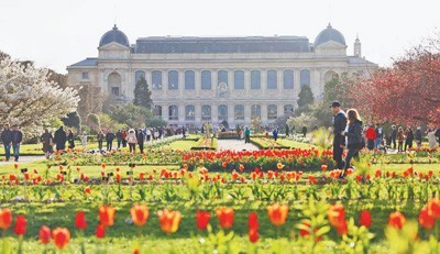 游客在法国国家自然历史博物馆外的巴黎植物园漫步。