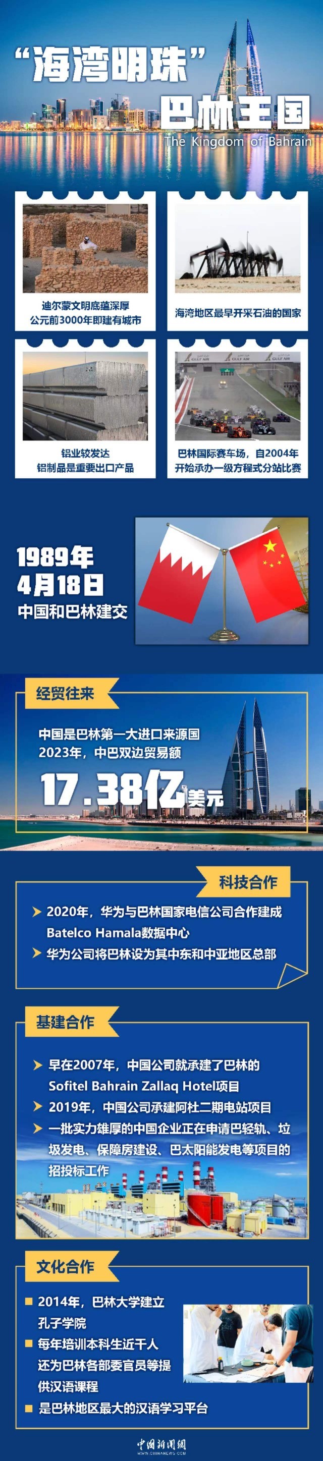 巴林国王哈马德说,高度赞赏中方对阿拉伯正义事业特别是在巴勒斯坦问题上的坚定支持、为缓解加沙民众苦难所作出的巨大努力,以及对巴勒斯坦独立建国的全力支持。