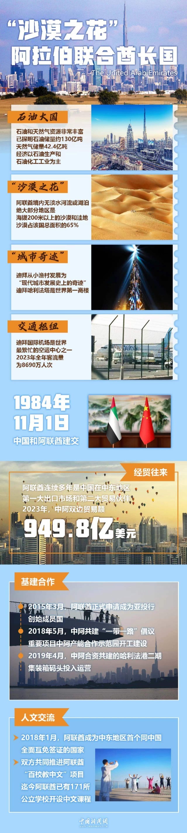 穆罕默德表示,阿联酋同中国关系建立在相互信任、相互尊重和共同利益的基础之上,各领域合作达到非凡水平。