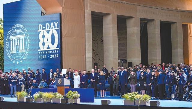 【环球时报驻法国、德国特约记者 董铭 雨山 环球时报特约记者 于文 柳玉鹏】美国总统拜登、英国国王查尔斯三世、法国总统马克龙、加拿大总理特鲁多、德国总理朔尔茨等西方国家领导人6月6日齐聚法国北部的诺曼底,纪念15万英美加等国联军80年前在这里登陆,成功在苏德战场之外开辟欧洲第二战场,加速了纳粹的败亡。拜登在纪念活动上大谈民主的重要性,称“诺曼底登陆证明,民主比世界上任何军队都更强大”。美国有线电视新闻网(CNN)6日却说,“他们异常团结,但恐惧却与日俱增”——欧洲大陆正在经历二战以来最惨烈的战斗,极右翼势力和民粹主义在大西洋两岸一路高歌。英国天空新闻网称,西方领导人带着各自的目标来到诺曼底,他们都准备借古喻今:拜登强调与盟友合作,显示自己在这一点优于信奉“孤立主义”的特朗普;马克龙考虑的是正在举行的欧洲议会选举,极右翼可能胜出。报道还称:“在所有的外交活动中,一个国家的缺席引人注目。俄罗斯军队在第二次世界大战中发挥了关键作用,俄罗斯驻法国大使曾被邀请参加这一活动,但后来被撤销——这提醒人们,诺曼底登陆80年后,欧洲再次分裂。”