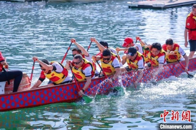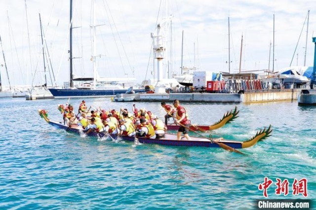 日前,一场“超燃”的龙舟赛在西班牙加泰罗尼亚自治区巴达洛纳市港口举行。一艘艘龙舟在海面上乘风疾驰,行如蛟龙出水,桨下浪花激扬。伴随着铿锵的鼓点,划手们举桨、插桨、拉桨,动作整齐划一、配合默契。岸边人潮涌动,呐喊声不断。