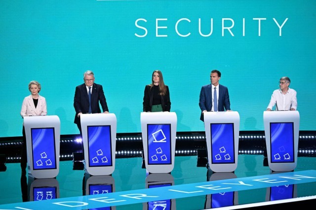 5月23日,欧洲议会5个党团提名的欧盟委员会主席候选人在欧盟总部所在地布鲁塞尔参加电视辩论。