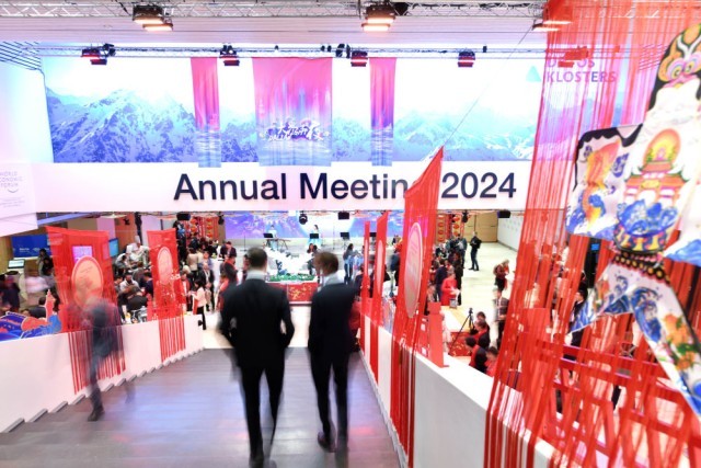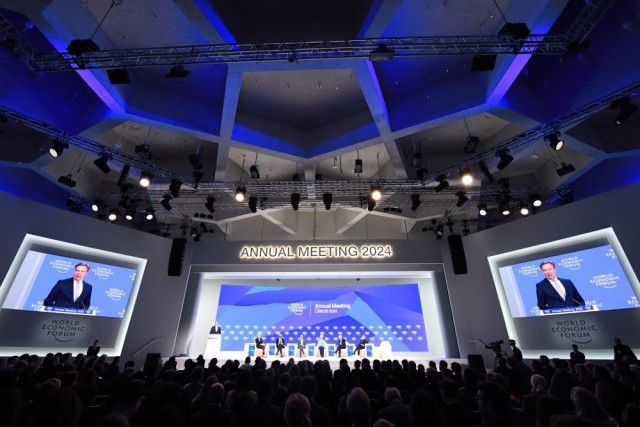 ↑在瑞士达沃斯举行的世界经济论坛2024年年会现场。