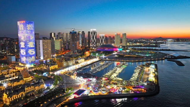 ↑夏季达沃斯主会场所在的大连东港商务区。
