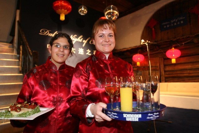 2007年1月25日,在瑞士达沃斯举行的“中国大连之夜”上,当地女服务员穿上了中国传统服装。