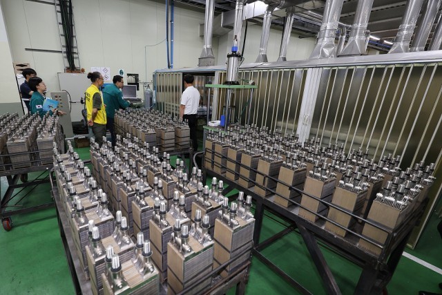 当地时间6月26日,韩国光州尖端科学产业园区一家电池生产企业,相关人士进行紧急安全检查。