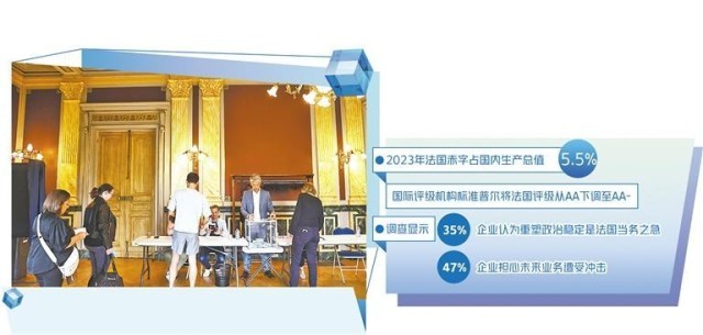 其次,市场及投资者信心严重受挫。法国中小企业联合会此前发布的调查显示,35%的企业认为“重塑政治稳定是法国的当务之急”,47%的企业担心未来的业务将遭受冲击。法国雇主协会极力呼吁,“议会选举后新组建的政府应实施清晰稳定的经济政策,总统应作出符合国家利益而不是党派利益的选择”。法国媒体认为,投资者偏向可预测和稳定的营商环境,法国的政治不确定性将降低其吸引力,进而对外国在法投资造成影响。另有税务行业人士指出,“近期,咨询离法事务的人数增长超过三成,特别以企业界高管、投资者为主”,而英国的游说集团则已经“蠢蠢欲动”,“随时准备夺回因脱欧造成的金融失地”。