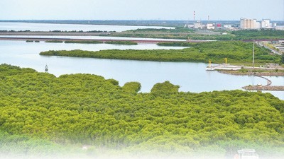国能印尼爪哇电厂岸边的红树林生态保护区。