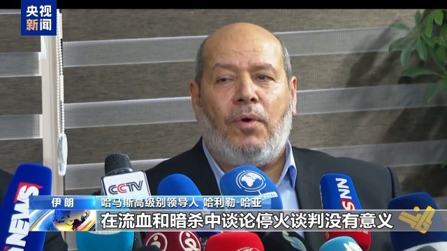 哈马斯高级别领导人 哈利勒·哈亚:在流血和暗杀中谈论停火谈判没有意义,(以色列总理)内塔尼亚胡和(美总统)拜登曾就初步协议达成一致,但在谈判时却增加新的协议条件。这显示内塔尼亚胡和他的政府,不寻求达成协议,也不想停止侵略。