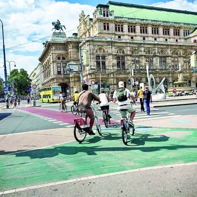 维也纳国家歌剧院附近的骑行者和自行车道。付志刚摄/光明图片