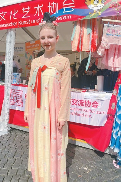 一名德国女子在体验汉服。本报记者 刘 赫摄