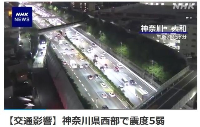 神奈川县松田市政厅安全防灾室的一名工作人员称,当地发生了大约5至6秒左右的强烈震动,地震导致东海道新干线、东北新干线和上越新干线等多条铁路一度中断。