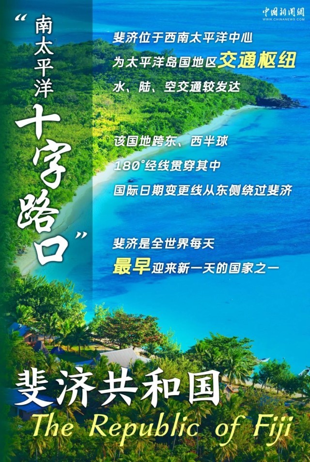 中新网8月17日电 这个国家,横跨东、西半球,是全球每天最早迎来新一天的国度之一。它由数百个岛屿组成,还拥有绚丽的珊瑚礁,风光旖旎,渔业资源丰富……它就是斐济共和国。