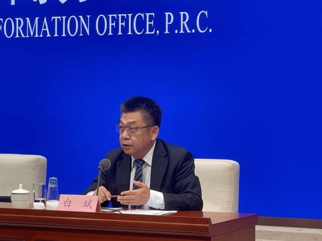 8月20日,国务院新闻办公室就2024年中非合作论坛峰会经贸与发展合作有关情况举行新闻发布会。国家国际发展合作署地区二司司长白斌回答记者提问。中青报·中青网记者 傅瑞/摄