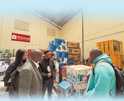 7月25日,在肯尼亚马查科斯郡,中肯媒体记者走进电商平台Kilimall非洲海外仓采访仓储物流及运营情况。