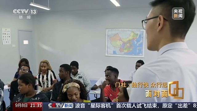 每到一个地方,门杜也会走进当地的学校,和学生们进行深入交流,了解真实的中国,讲述真实的非洲。