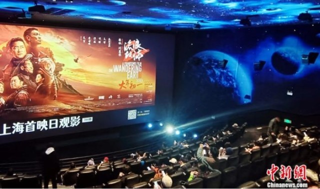 2023年1月22日,影迷在上海一电影院观看国产科幻片《流浪地球2》。陈玉宇 摄