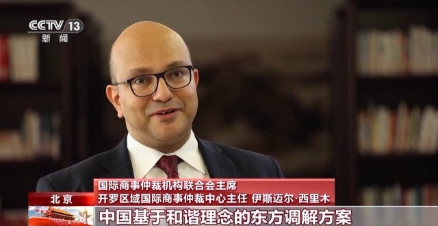 国际商事仲裁机构联合会主席 、开罗区域国际商事仲裁中心主任 伊斯迈尔·西里木:中国在调解方面已经走在世界前列 ,中国基于和谐理念的东方调解方案被世人熟知,我认为中国的传统是希望通过和谐的方式来解决争端。