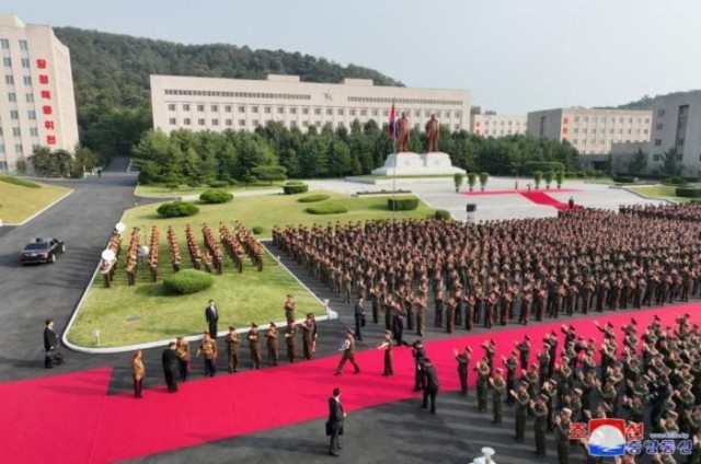 据报道,当天,金正恩访问金正恩国防综合大学祝贺建校60周年时发表讲话称,朝方绝不容许朝鲜半岛的力量平衡遭到破坏,将推进国防科学和军工业发展,加强自卫性战争遏制力。