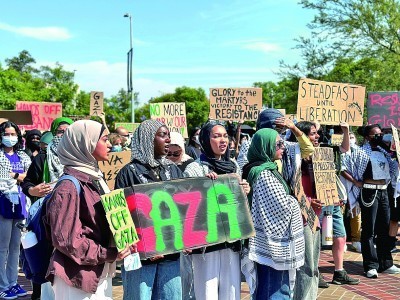 10月7日,学生在美国南加州大学门外举行集会活动,呼吁加沙地带停火止战。新华社发