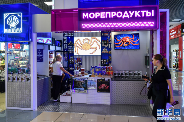 这是在俄罗斯符拉迪沃斯托克机场拍摄的海鲜商店。