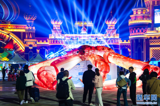 游客在吉林省珲春市的2024珲春帝王蟹美食嘉年华现场游玩。