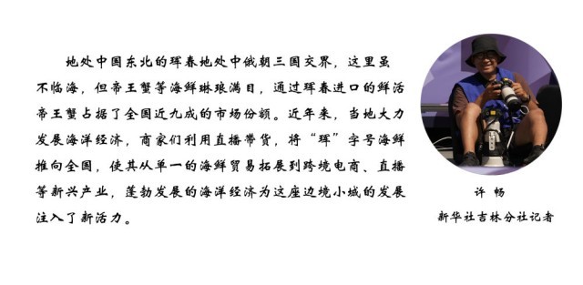 俄罗斯帝王蟹丰富了中国人的餐桌,也带动了中俄边境地区的合作与发展。位于珲春的东北亚跨境电商产业园,一家占地超过1000平方米的帝王蟹保税店于今年年初正式开业。该店负责人王海说,他们与俄罗斯蟹业集团深度合作,深海捕捞的帝王蟹“原车原水原货”发到店内,“个儿大鲜美,价格实惠”。开业以来,人流不断,“最高峰时每天能接待上万人。”暂养池内,一只只帝王蟹吐着水泡、挥舞巨钳,旁边的工作人员忙着打包,而电商主播在暂养池旁边通过直播平台向全国网友推介。