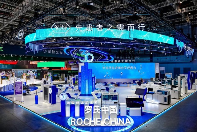 图为罗氏制药在第七届进博会上的展台。(受访者供图)