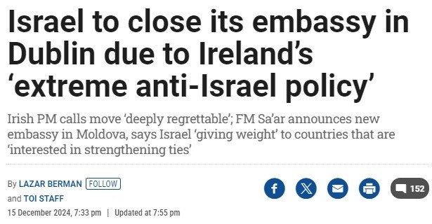 △以色列时报15日报道,以色列准备关闭驻爱尔兰大使馆