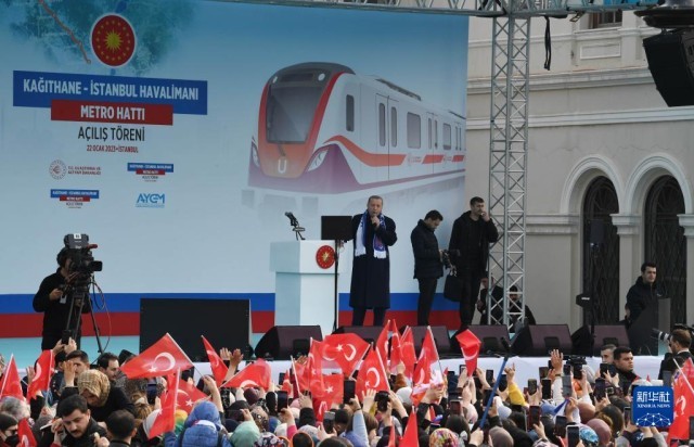 2023年1月22日,土耳其总统埃尔多安出席伊斯坦布尔新机场线开通仪式。(图源:新华社)