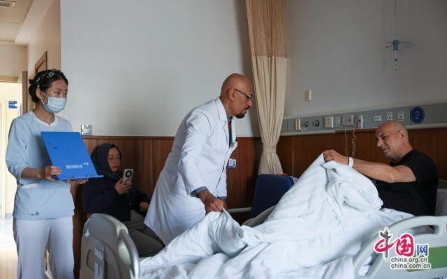 一有时间,阿马尔还常会去住院病房查房,为远离家乡的外籍患者带去温暖和帮助。