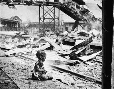 1937年8月28日,日军轰炸上海南站,铁轨边一个满身是血的幼儿嚎啕大哭。