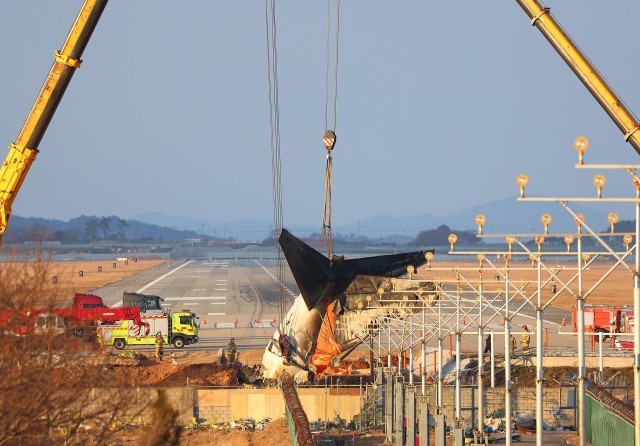 2024年12月29日,一架韩国济州航空的波音737-800客机在位于韩国全罗南道的务安机场着陆时,偏离跑道后撞上机场围墙。除2人获救外,机上其余179人全部遇难。(总台记者 张昀)