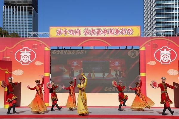 1月11日,在日本名古屋市,新疆喀什地区歌舞剧团的演员在第19届“名古屋中国春节祭”上表演。新华社记者 胡晓格/摄